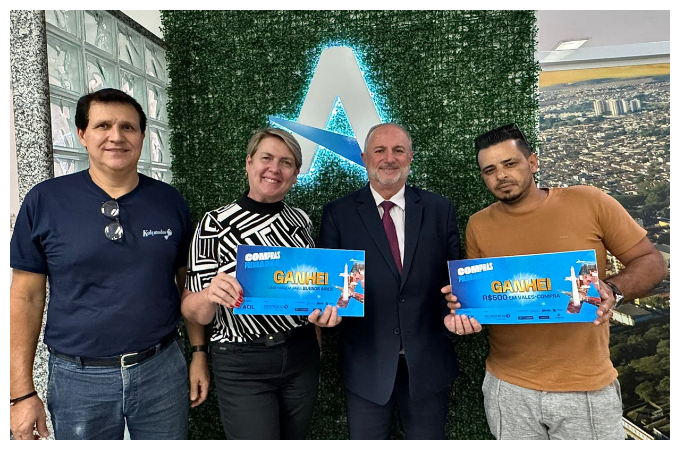 O vendedor responsável pela venda, Luís Henrique Ferreira, também foi contemplado e recebeu R$ 500 em vale-compras, demonstrando o compromisso da ACIL em reconhecer tanto os consumidores quanto os profissionais do setor.