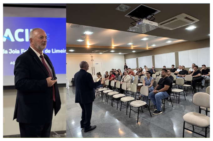 A condução da apresentação foi feita pelo presidente da ACIL, Dr. Valmir Martins, que destacou os avanços conquistados e as ações desenvolvidas ao longo do período. Em sua fala, reforçou a importância da transparência na gestão e do engajamento coletivo como pilares fundamentais para o crescimento sustentável do setor joalheiro.