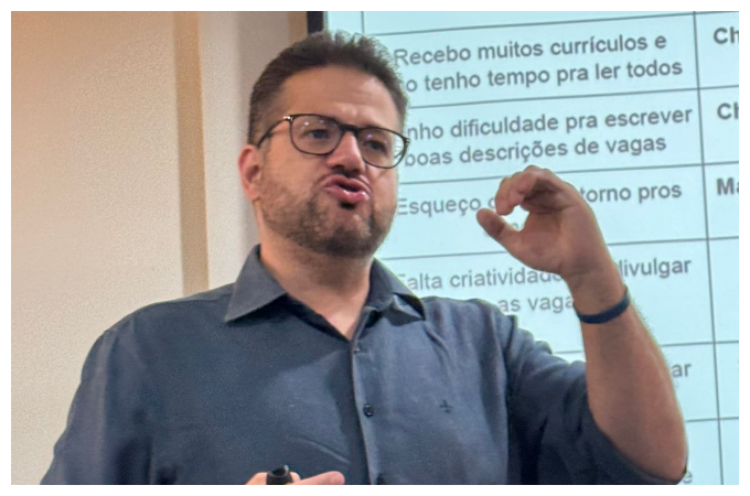 Com uma linguagem clara e prática, Netto apresentou como a Inteligência Artificial pode ser uma grande aliada no dia a dia dos profissionais de RH, desde a captação de talentos até o onboarding de novos colaboradores. O especialista destacou que a tecnologia, quando bem utilizada, amplia a eficiência dos processos e libera tempo para que as equipes foquem em ações mais estratégicas e humanas.