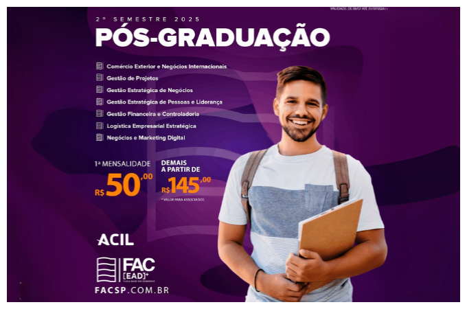 Se você está em busca de qualificação profissional com flexibilidade, qualidade e foco no mercado, a hora de começar é agora. A Faculdade do Comércio (FAC), instituição da Rede de Associações Comerciais, abriu matrículas para o segundo semestre de 2025 com condições especiais e descontos exclusivos para associados da ACIL Limeira.
